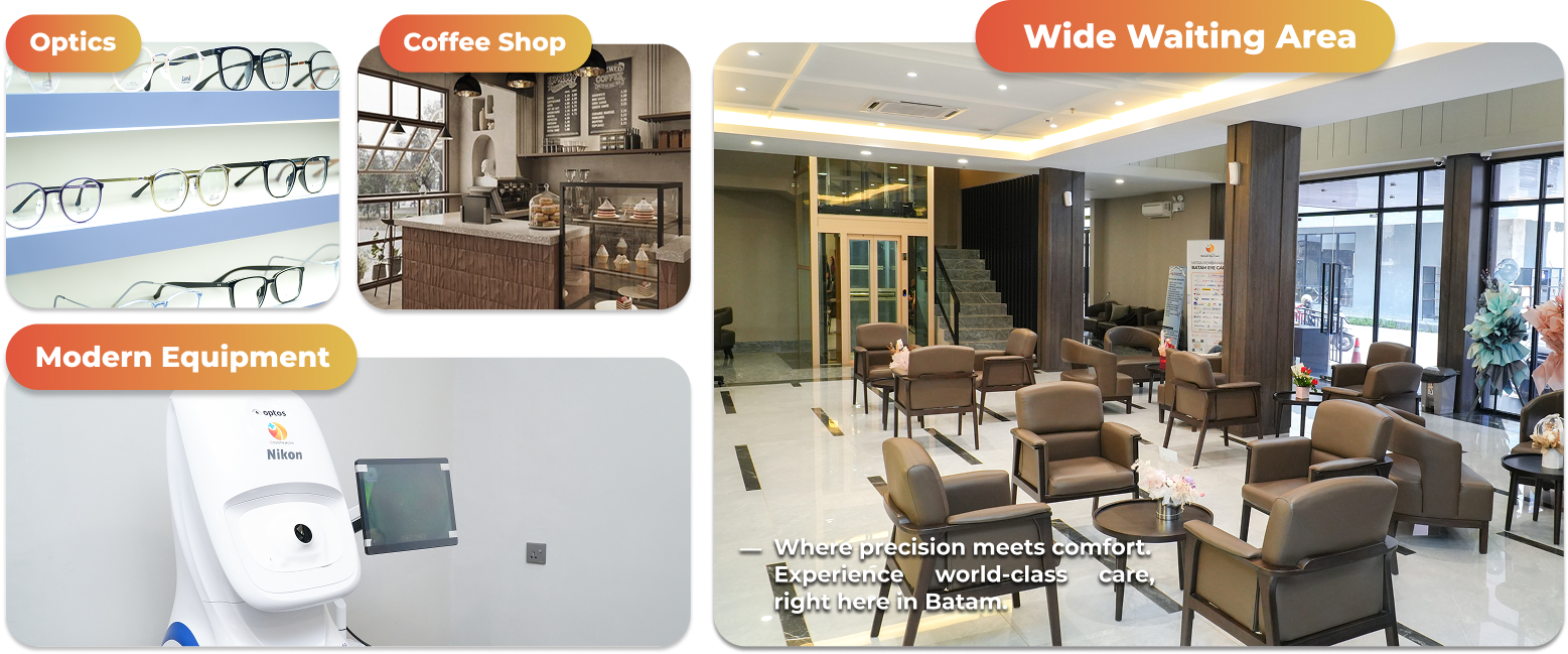 Our professional team of ophthalmologists, internists, and experienced staff ensures accurate diagnoses and effective care, all conveniently available in Batam, without the need to go abroad.